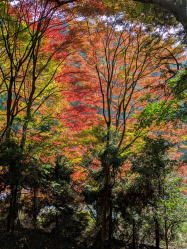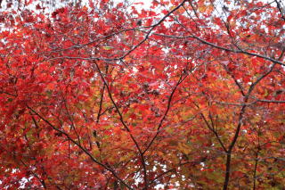火床から眺めると遠くは煙っているが、陽は差している。慎重に大文字の右払いを降り、圓重寺の裏に出てきた。ここも紅葉の隠れたる名所。
