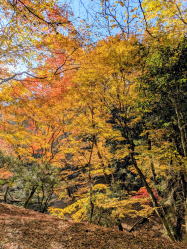 体の話(お互い歳をとりました。経年劣化であちこちガタが来ています)、大文字山系の紅葉(黄葉)の情報交換。また会いましょうということでお別れする。それにしても山休さんは大文字山のあちらこちらの紅葉(黄葉)を一日で全部回られている。われわれにはとても真似できないところである。