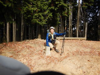ここから南東方向へ向かい、出合乗越から熊山乗越に。それから天の原に降りていく。11月23日にお昼を食べたところで今日もお昼にした。少し寒くなってきたので、誕生日祝いにユッキーからもらったライトウインドブレーカーを羽織る。