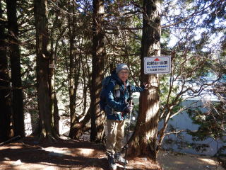 つづら折りの道も終わり、最後の直線に入ったところで、上からアジア系のひとが降りてきて「山頂はどこ?」と英語で聞いてくる。どうやら大比叡を通りすぎてきたらしい。戻るように言ったところ、急ぎ足で戻っていった。山頂は分かりにくかろうと思って、こちらも急いで駆け上る。このときに朝の内重かった体が急に軽くなり、後を追い、無事山頂を指し示すことができた。どこから登ってきたのかを聞いたら、山頂の駐車場からということで、ハイカーではなかった。