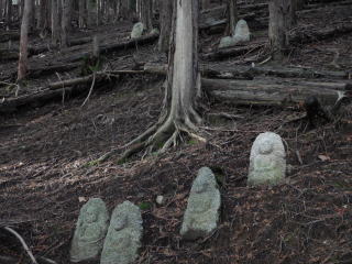 本坂を登っていると左手に「石仏庭園広場」という道標が見えてくる。これは本坂の整備をしている坂本の方が、掘り出された石仏を1ヶ所に集めて供養されているところである。しばし信長の頃の名もなき庶民の死に思いを馳せる。