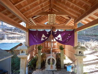 長等山テラスからは降りる一方、神社に降りる最後のところがロープ場で急だが、ここへ降りれば、あとは赤橋で湖西道路を渡り、神社の参道の階段を降りて鳥居を潜る。