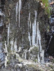 講座が始まるのは13時30分。山頂が11時出発では早く着きすぎる。そこで、つとめてペースをダウン。写真を撮りながらゆっくりと下山する。楼門の滝では水量が少ないが、氷柱が見られた。