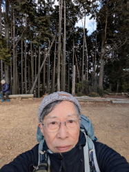 9時20分に銀閣寺道とトイレを出発して山頂には10時33分に到着した。この時間だと好きなところに座ることが出来る。早めの昼食。いつもの丹波橋駅のパンショップで仕入れたミックスサンド。カツサンドが入っているのがうれしい。やや風があり、冷たい。