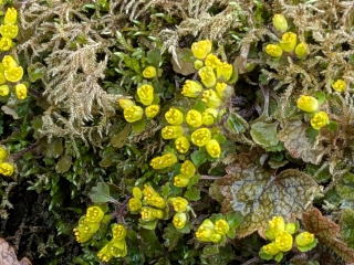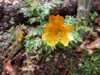 こんな天気では午前中の思惑は見事に外れ、西尾根をカナクギノキの丘まで追われるようにして歩き、そこからフクジュソウ保護区に。係の人に申請書を手渡す。「あいにくの天気ですね」と声かけられる。2週間前には、好天の下、一番花の福寿草をたっぷり見せてもらったので、福寿草に関してはあまり期待していなかった。二番花の福寿草が寒そうに花を閉じていた。