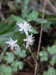 2週間前には姿形もなかったのだが、今日は見事にたくさんかわいい花を咲かせてくれたセリバオウレンを写真に撮り、オオキツネノカミソリやイチリンソウの葉を確認しながら進んで行く。エイザンスミレ、ナガバノタチツボスミレは確認できたが、ヒナスミレの葉っぱがでていないか探してみたが見つからなかったことは残念である。