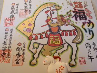 ・「伏見福めぐり」で藤森神社へ初詣。これで「伏見福めぐり」達成で、馬の土鈴を頂いた。